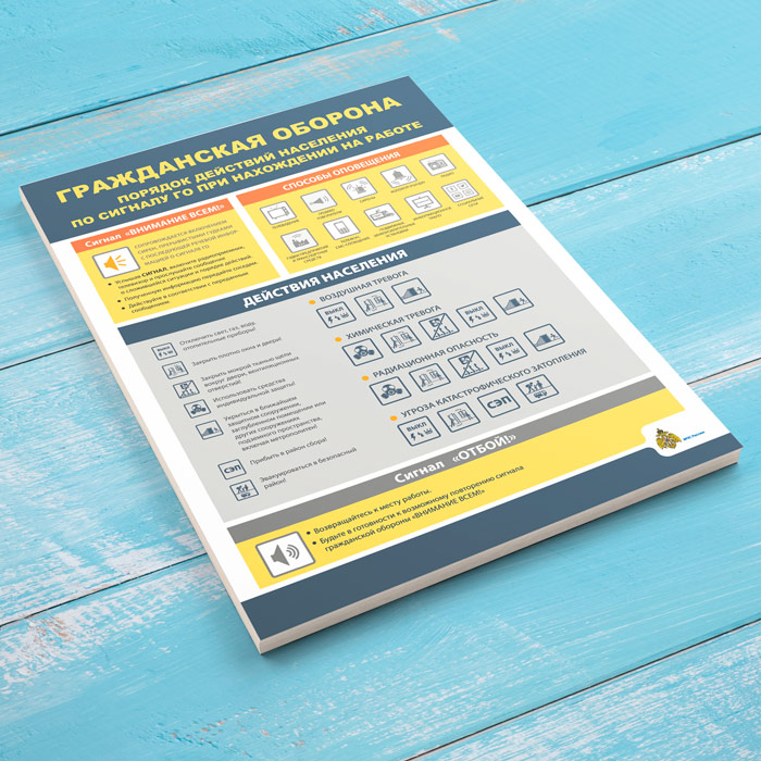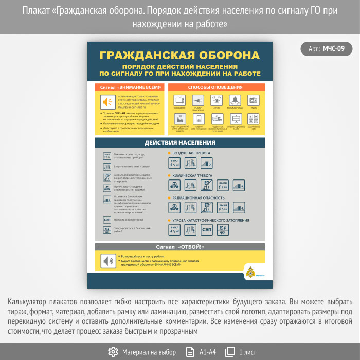 Плакат «Гражданская оборона. Порядок действия населения по сигналу ГО при нахождении на работе» (МЧС-09, 1 лист) в Новом Уренгое купить