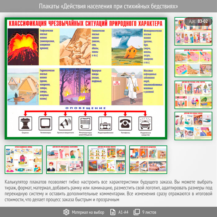 Плакаты «Действия населения при стихийных бедствиях» (ВЗ-02, 9 листов) в Новом Уренгое купить