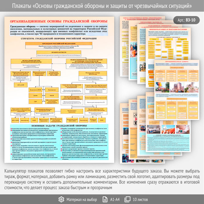 Плакаты «Основы гражданской обороны и защиты от чрезвычайных ситуаций» (ВЗ-10, 10 листов) в Новом Уренгое купить
