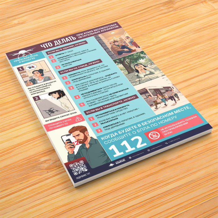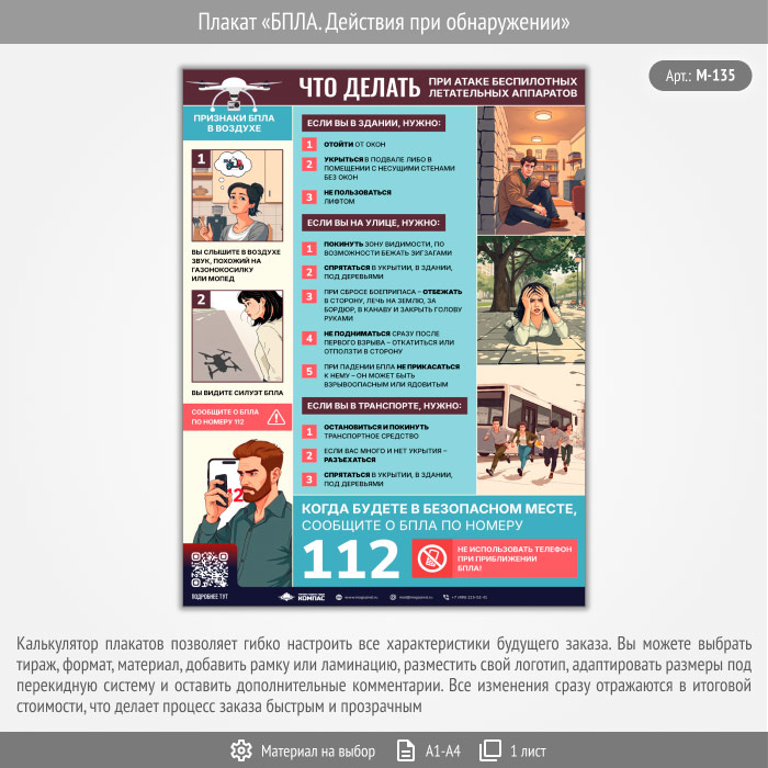 Плакат «БПЛА. Действия при обнаружении» с QR (М-135, 1 лист) в Новом Уренгое купить