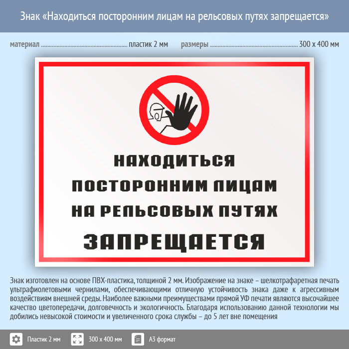Знак «Находиться посторонним лицам на рельсовых путях запрещается», КЗ-25 (пластик, 400х300 мм) в Новом Уренгое купить