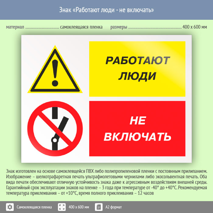 Знак «Работают люди - не включать», КЗ-83 (пленка, 600х400 мм) в Новом Уренгое купить