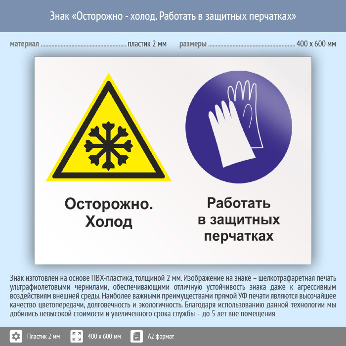 Знак «Осторожно - холод. Работать в защитных перчатках», КЗ-59 (пластик, 600х400 мм) в Новом Уренгое купить