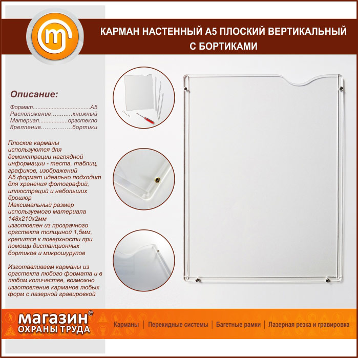 Карман настенный А5 плоский вертикальный с бортиками в Новом Уренгое купить