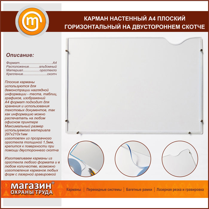 Карман настенный А4 плоский горизонтальный на двустороннем скотче в Новом Уренгое купить
