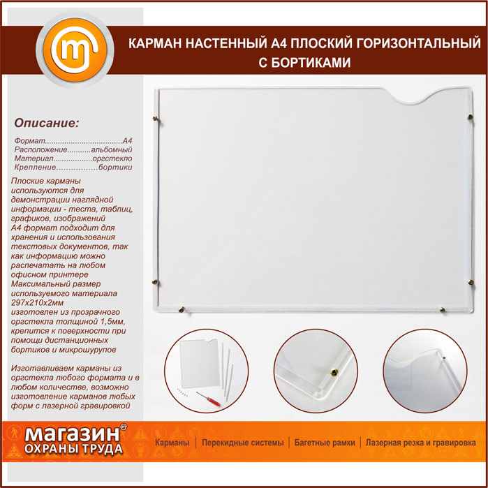 Карман настенный А4 плоский горизонтальный с бортиками в Новом Уренгое купить