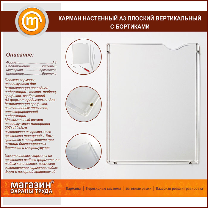 Карман настенный А3 плоский вертикальный с бортиками в Новом Уренгое купить