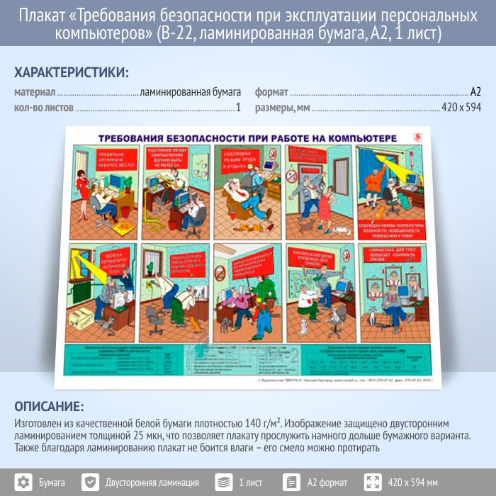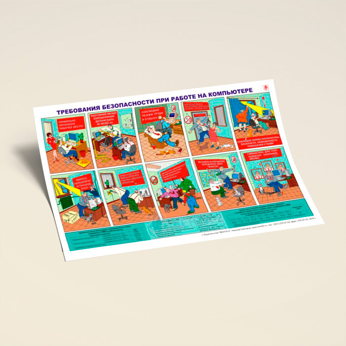 Плакат «Требования безопасности при эксплуатации персональных компьютеров» (В-22, ламинированная бумага, А2, 1 лист) в Новом Уренгое купить