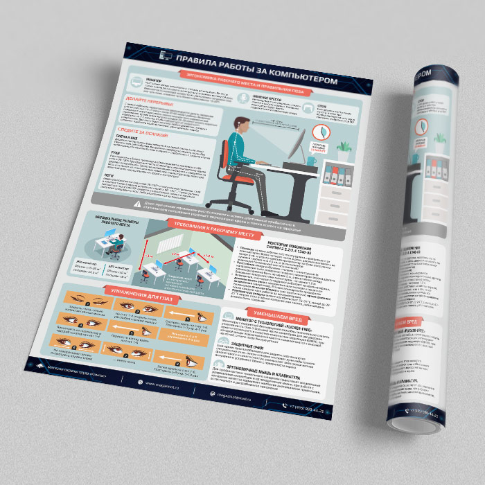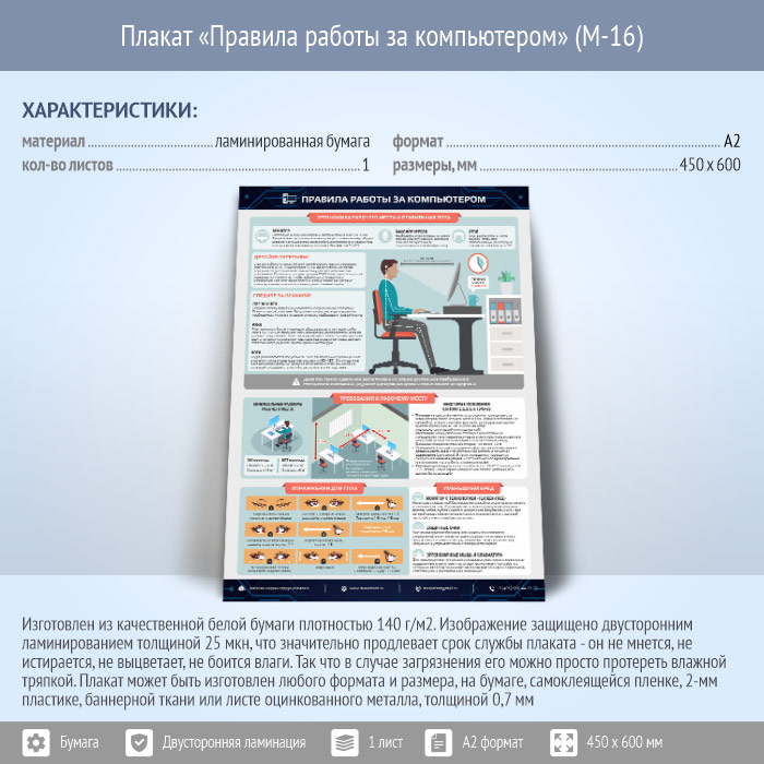 Плакат «Правила работы за компьютером» (М-16, ламинированная бумага, А2, 1 лист) в Новом Уренгое купить