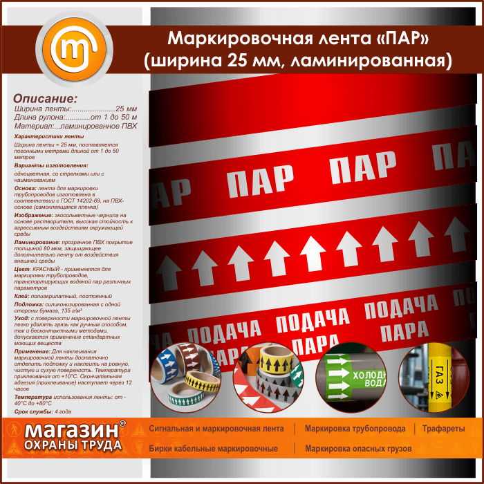 Маркировочная лента «ПАР» (ширина 25 мм, самоклеящаяся плёнка) в Новом Уренгое купить