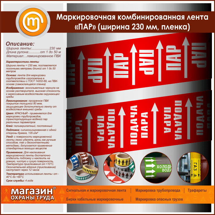Маркировочная комбинированная лента «ПАР» (ширина 230 мм, самоклеящаяся плёнка) в Новом Уренгое купить