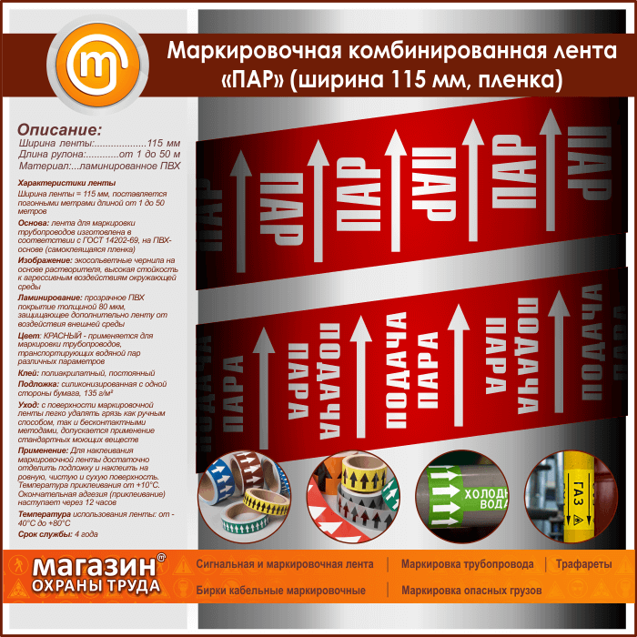 Маркировочная комбинированная лента «ПАР» (ширина 115 мм, самоклеящаяся плёнка с ламинированием) в Новом Уренгое купить
