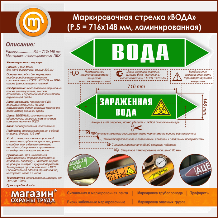 Маркировочная стрелка «ВОДА» (P.5 = 716х148 мм, самоклеящаяся плёнка с ламинированием) в Новом Уренгое купить