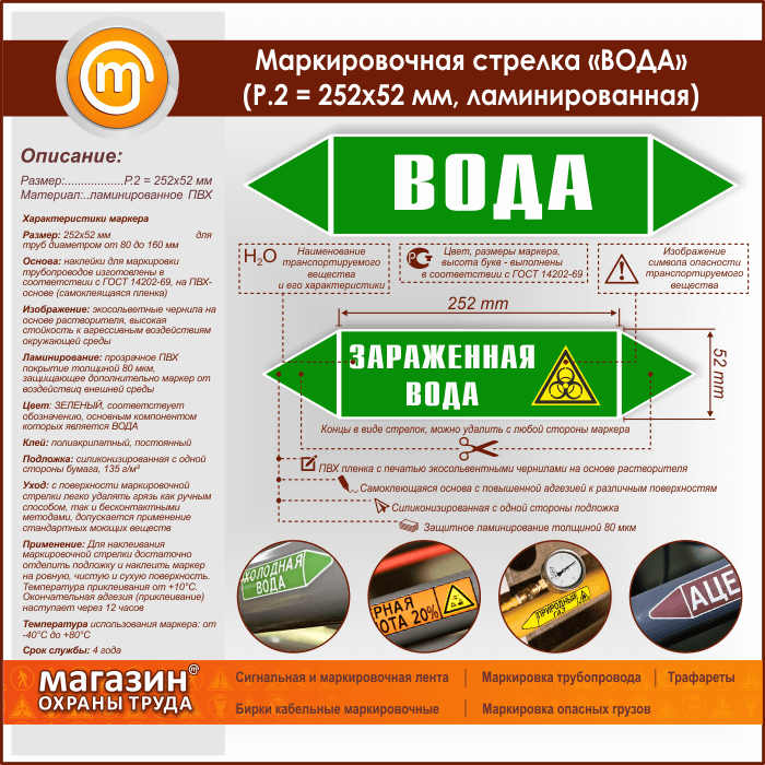 Маркировочная стрелка «ВОДА» (P.2 = 252х52 мм, самоклеящаяся плёнка с ламинированием) в Новом Уренгое купить
