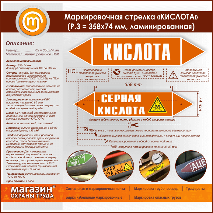 Маркировочная стрелка «КИСЛОТА» (P.3 = 358х74 мм, самоклеящаяся плёнка с ламинированием) в Новом Уренгое купить