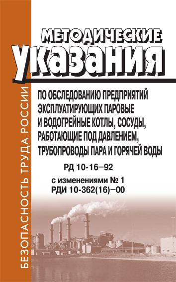 Методические указания по обследованию предприятий, эксплуатирующих паровые и водогрейные котлы, сосуды, работающие под давлением, трубопроводы пара и горячей воды. РД 10-16-92 (ЛД-112) в Новом Уренгое купить