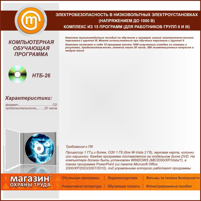 «Электробезопасность в низковольтных электроустановках (напряжением до 1000 В)», комплекс из 15 обучающих программ (для работников групп II и III) в Новом Уренгое купить
