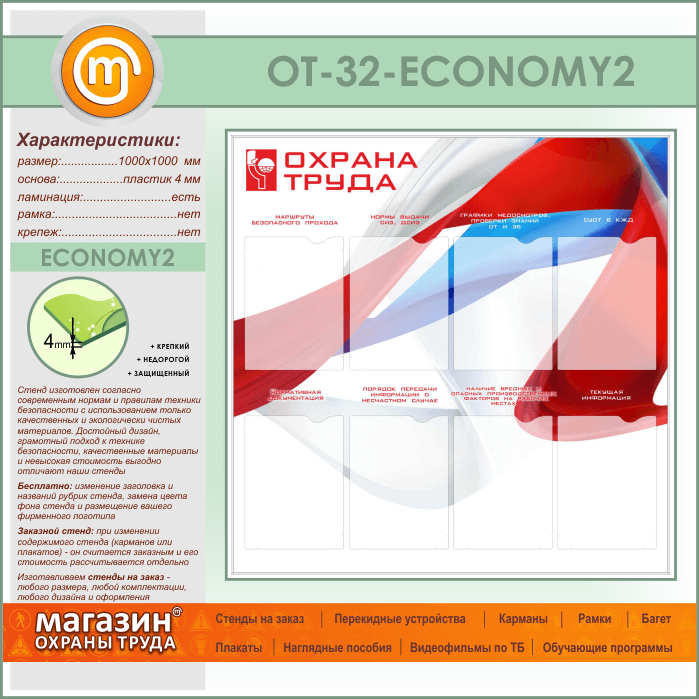 Стенд «Охрана труда» с 8 карманами (OT-32-ECONOMY2) в Новом Уренгое купить