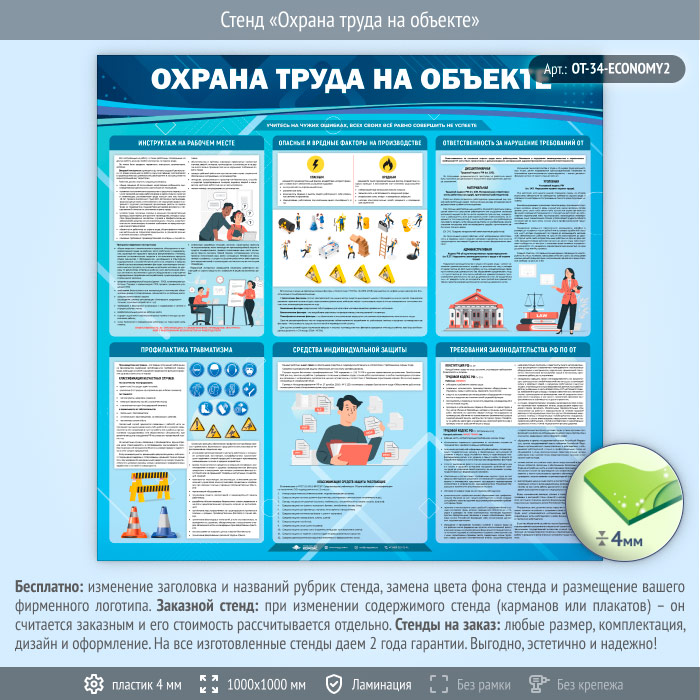Стенд «Охрана труда на объекте» (OT-34-ECONOMY2) в Новом Уренгое купить