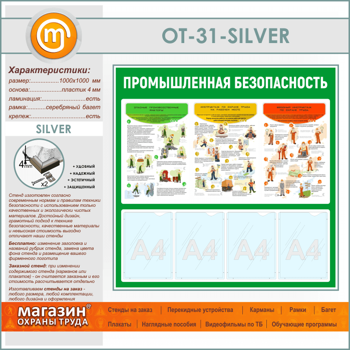 Стенд «Промышленная безопасность» с 4 карманами (OT-31-SILVER) в Новом Уренгое купить