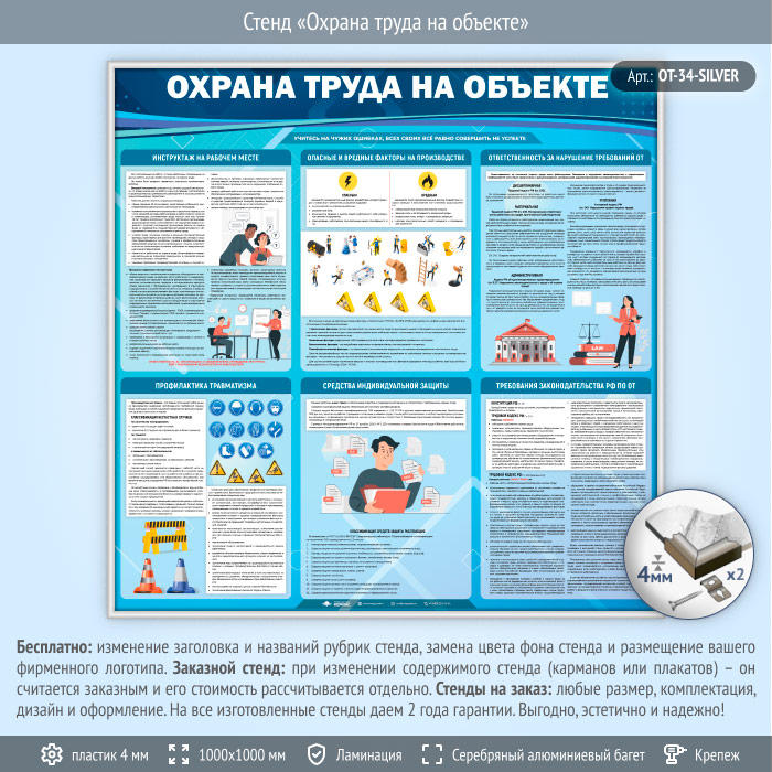 Стенд «Охрана труда на объекте» (OT-34-SILVER) в Новом Уренгое купить