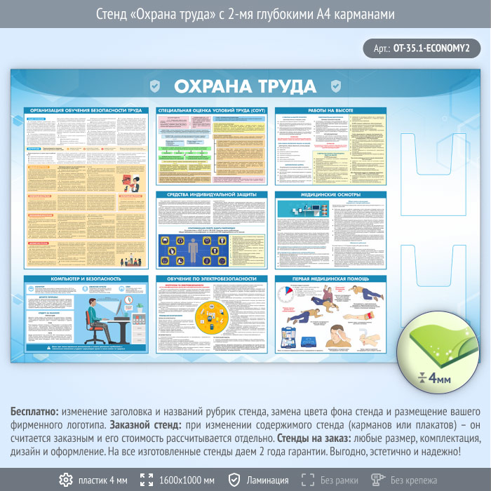 Стенд «Охрана труда» с 2-мя глубокими А4 карманами (OT-35.1-ECONOMY2) в Новом Уренгое купить