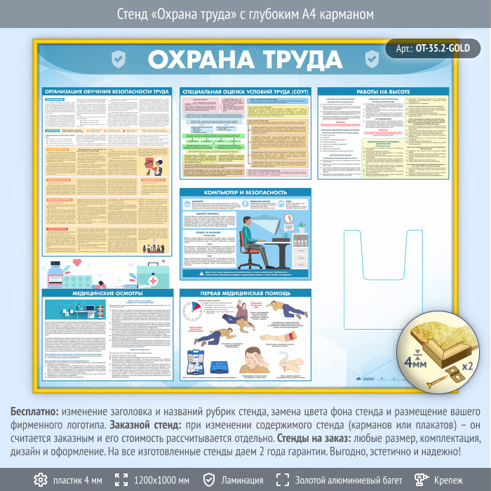 Стенд «Охрана труда» с глубоким А4 карманом (OT-35.2-GOLD) в Новом Уренгое купить