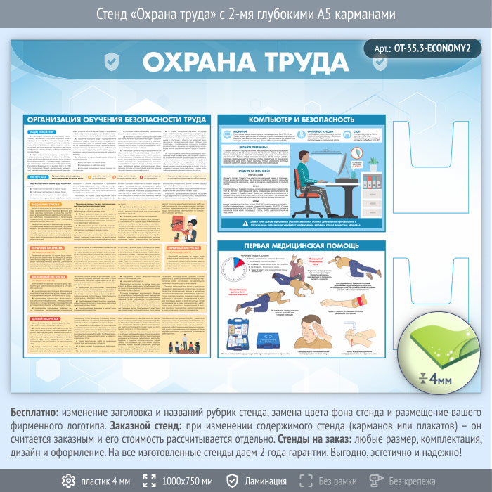 Стенд «Охрана труда» с 2-мя глубокими А5 карманами (OT-35.3-ECONOMY2) в Новом Уренгое купить