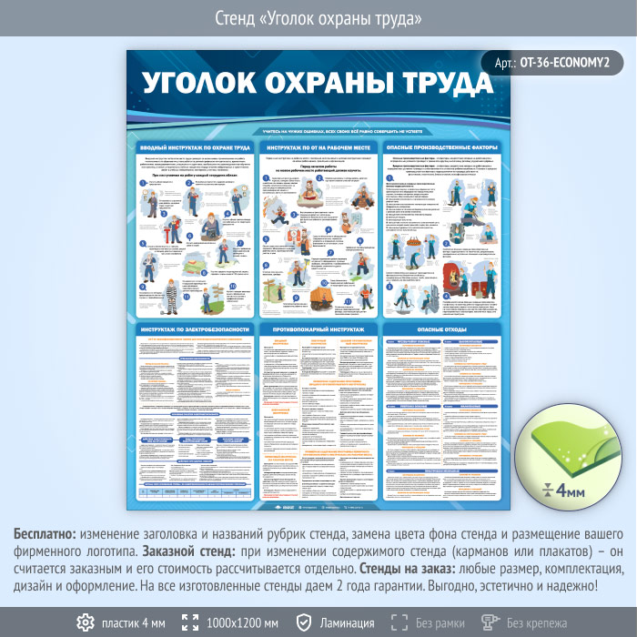 Стенд «Уголок охраны труда» (OT-36-ECONOMY2) в Новом Уренгое купить