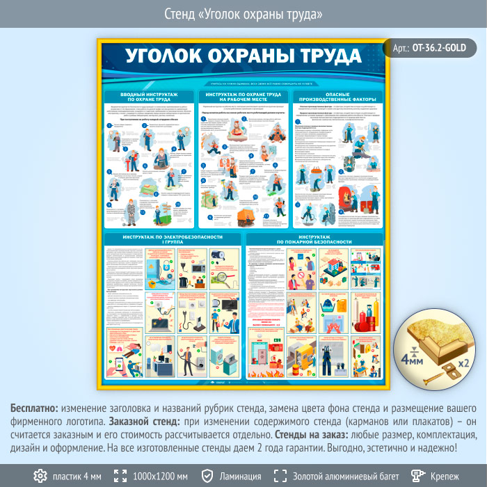 Стенд «Уголок охраны труда» (OT-36.2-GOLD) в Новом Уренгое купить