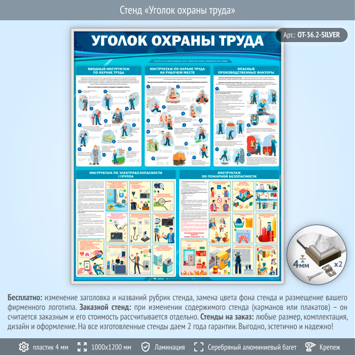 Стенд «Уголок охраны труда» (OT-36.2-SILVER) в Новом Уренгое купить