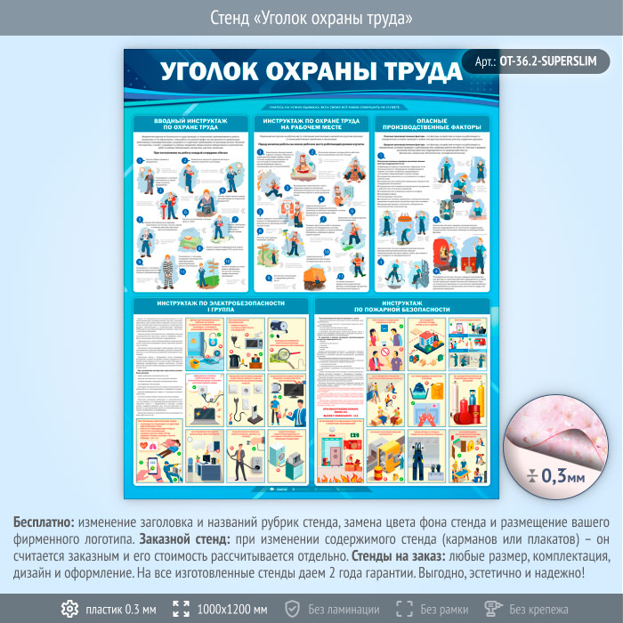 Стенд «Уголок охраны труда» (OT-36.2-SUPERSLIM) в Новом Уренгое купить