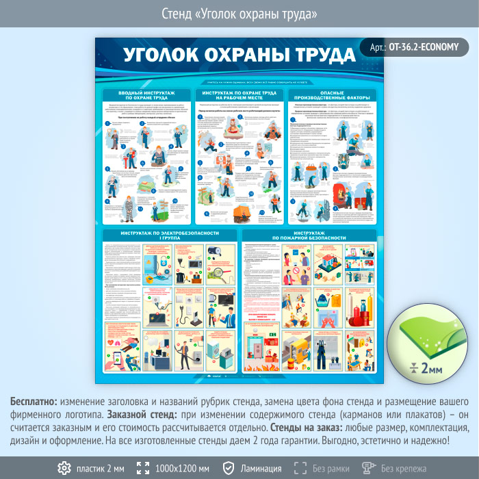 Стенд «Уголок охраны труда» (OT-36.2-ECONOMY) в Новом Уренгое купить