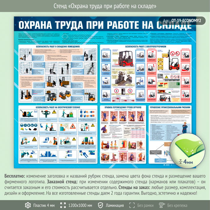 Стенд «Охрана труда при работе на складе» (OT-39-ECONOMY2) в Новом Уренгое купить