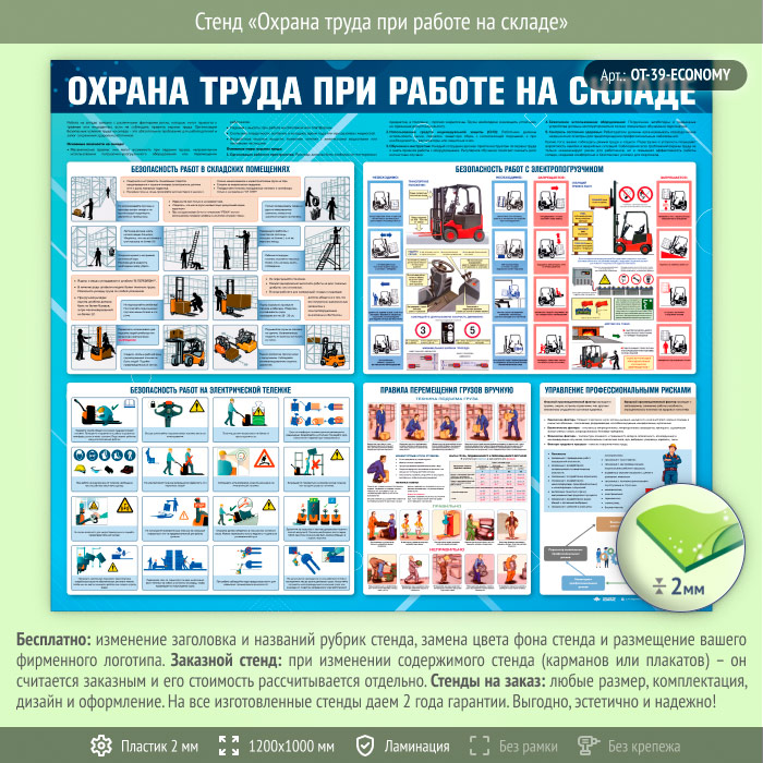 Стенд «Охрана труда при работе на складе» (OT-39-ECONOMY) в Новом Уренгое купить