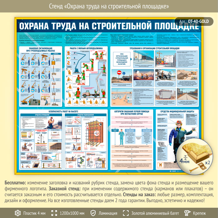 Стенд «Охрана труда на строительной площадке» (OT-40-GOLD) в Новом Уренгое купить