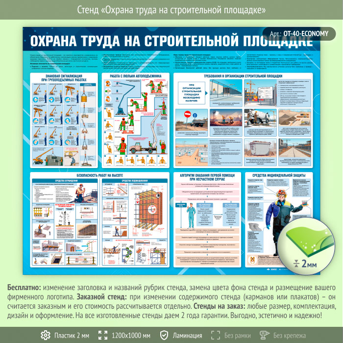 Стенд «Охрана труда на строительной площадке» (OT-40-ECONOMY) в Новом Уренгое купить