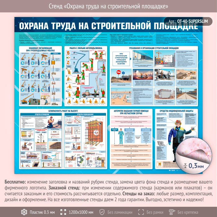 Стенд «Охрана труда на строительной площадке» (OT-40-SUPERSLIM) в Новом Уренгое купить