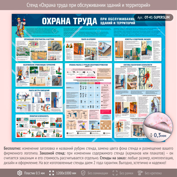 Стенд «Охрана труда при обслуживании зданий и территорий» (OT-41-SUPERSLIM) в Новом Уренгое купить
