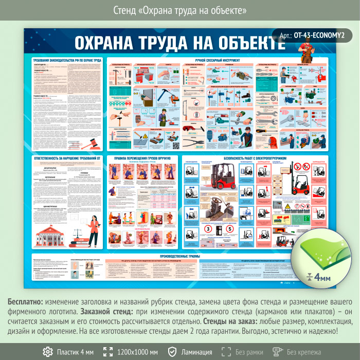 Стенд «Охрана труда на объекте» (OT-43-ECONOMY2) в Новом Уренгое купить
