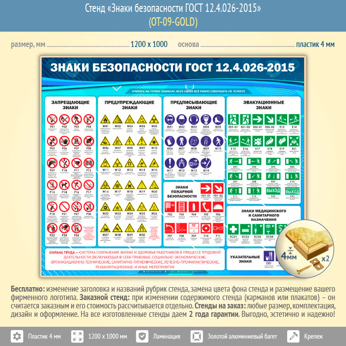 Стенд «Знаки безопасности ГОСТ 12.4.026-2015» (OT-09-GOLD) в Новом Уренгое купить