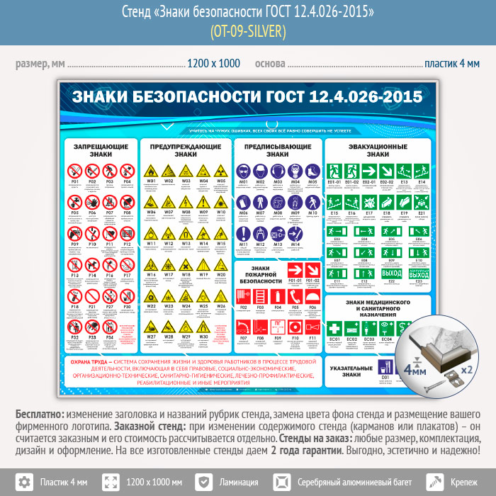 Стенд «Знаки безопасности ГОСТ 12.4.026-2015» (OT-09-SILVER) в Новом Уренгое купить