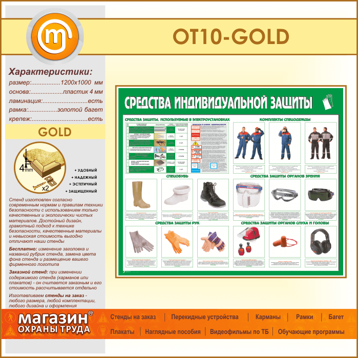 Стенд «Средства индивидуальной защиты» (OT-10-GOLD) в Новом Уренгое купить