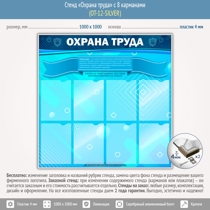 Стенд «Охрана труда» с 8 карманами (OT-12-SILVER) в Новом Уренгое купить