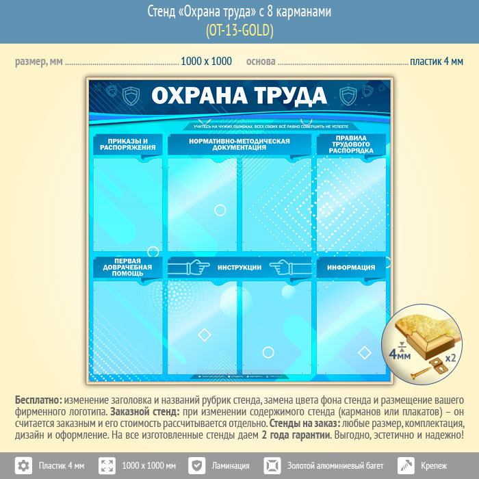 Стенд «Охрана труда» с 8 карманами (OT-13-GOLD) в Новом Уренгое купить