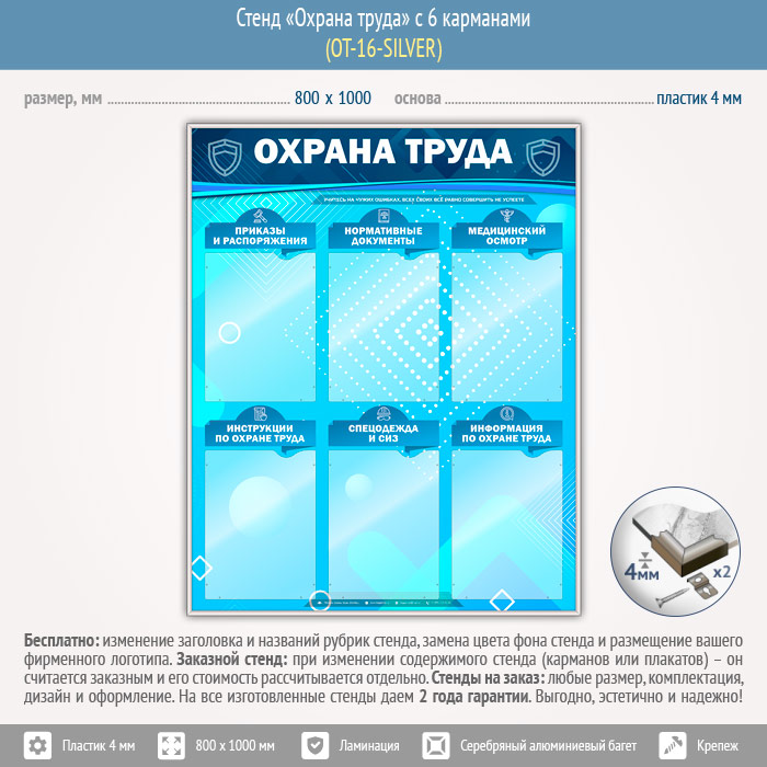 Стенд «Охрана труда» с 6 карманами (OT-16-SILVER) в Новом Уренгое купить