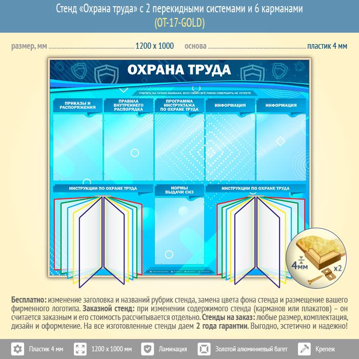 Стенд «Охрана труда» с 2 перекидными системами и 6 карманами (OT-17-GOLD) в Новом Уренгое купить