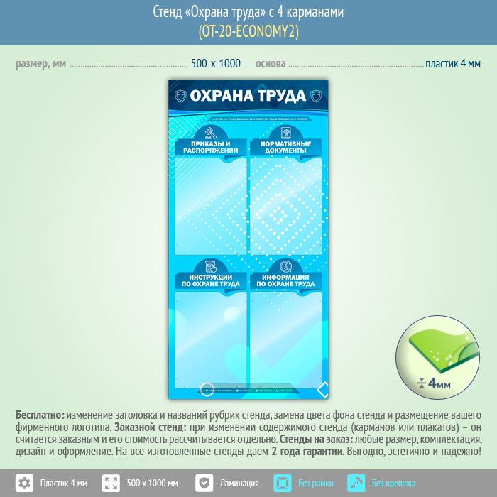 Стенд «Охрана труда» с 4 карманами (OT-20-ECONOMY2) в Новом Уренгое купить
