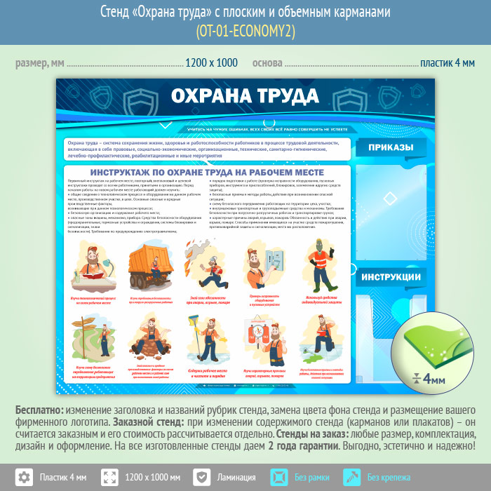 Стенд «Охрана труда» с плоским и объемным карманами (OT-01-ECONOMY2) в Новом Уренгое купить