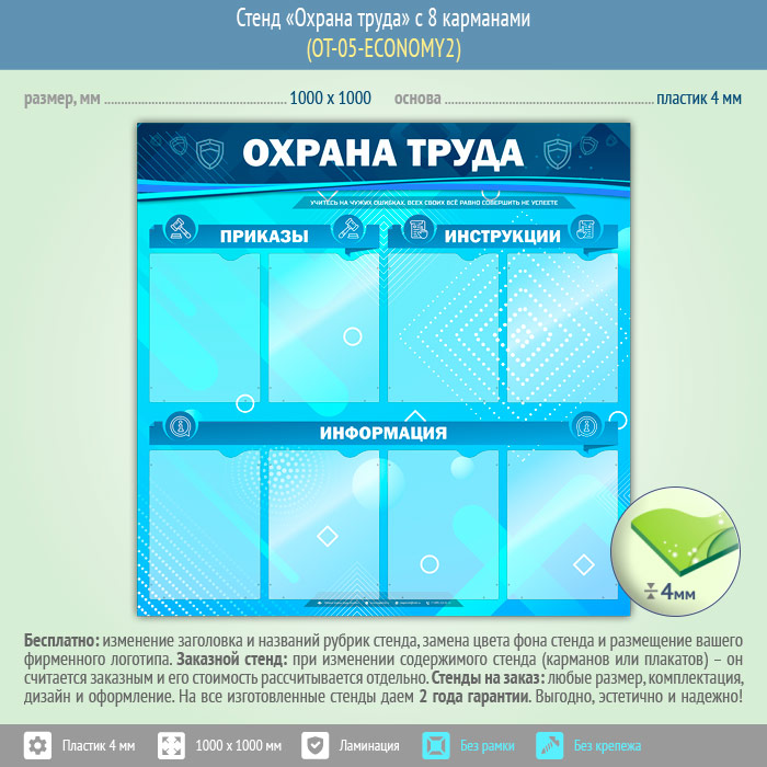 Стенд «Охрана труда» с 8 карманами (OT-05-ECONOMY2) в Новом Уренгое купить